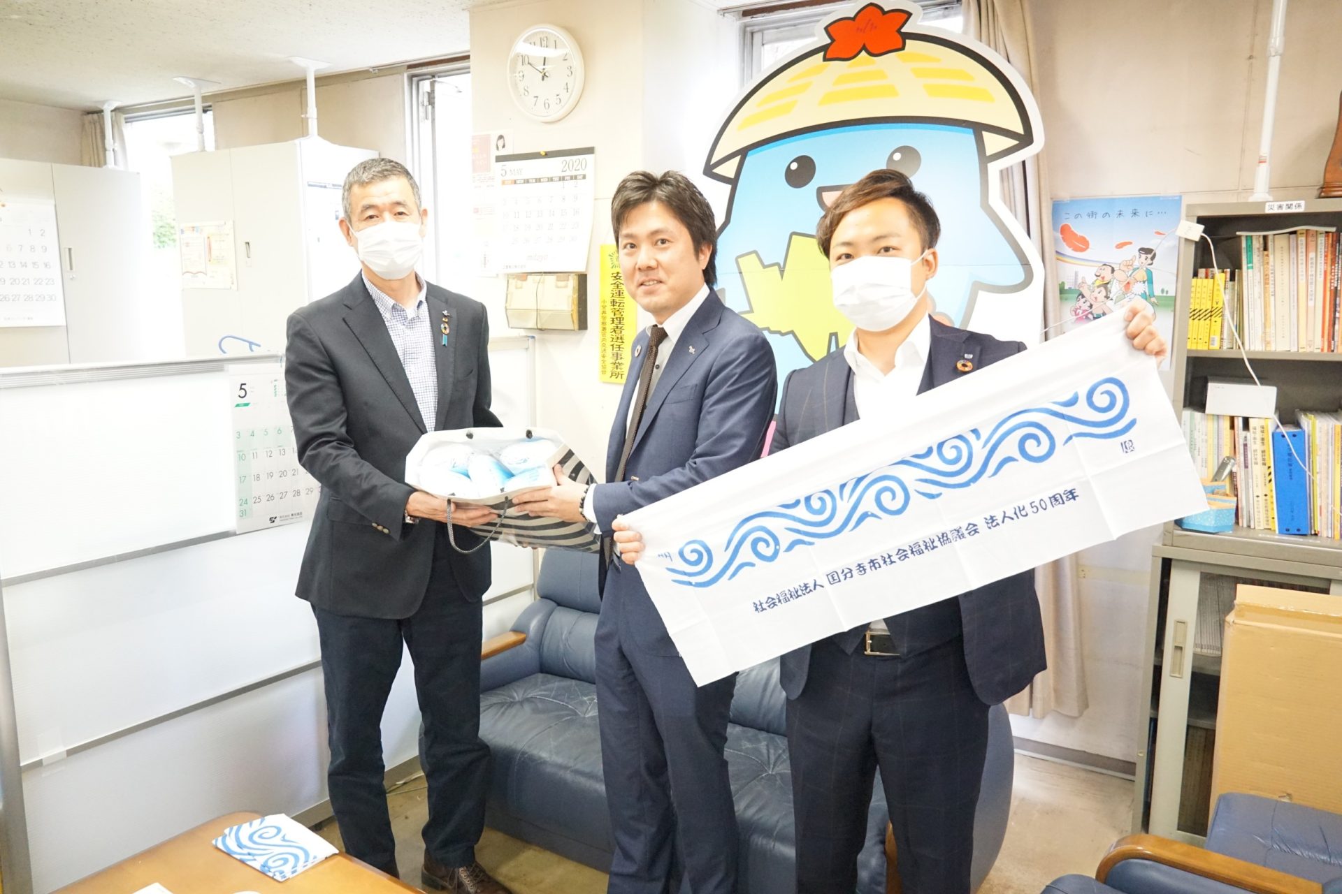 5月18日(月)に理事長の小坂と専務理事の山口が国分寺市社会福祉協議会にお伺いをし、マスク500枚を寄付させていただきました。